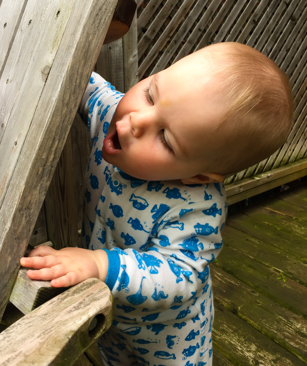 It’s hot today. Much hotter than it was in my last letter to you. We took you out for a morning walk because we knew that, by afternoon, none of us would want to move. Walks are a hit for you, because walks inevitably involve dogs. You are pro-dog. Loudly, enthusiastically pro-dog. You point at them, and tell them that they are a dog. You’re very excited about this. And when they leave, you immediately start asking for more. “Mo… mo… mooare!” This is true of birds and flowers, too, but dogs reign supreme.